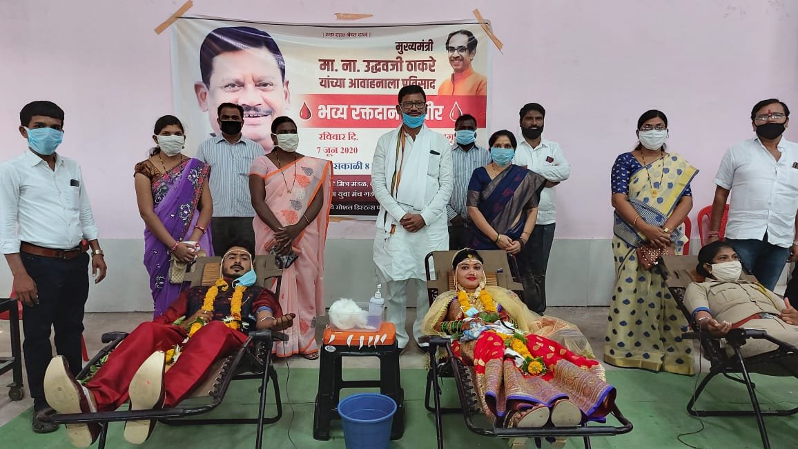 कोरपना तालुक्यातील बाखर्डी येथील नववर स्वप्नील एकनाथ सोनवणे व नववधू रेश्मा रमेश लाड या दाम्पत्यांनी विवाहानंतर लगेच रक्तदान करून एक नवा आदर्श निर्माण केला.