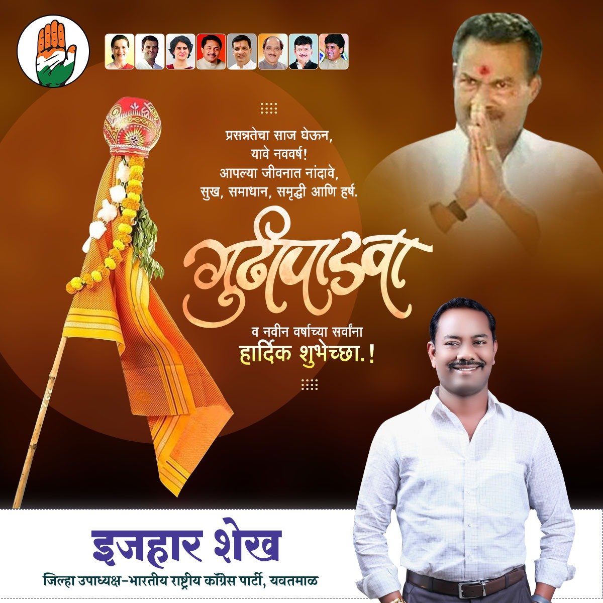 इजहार शेख तर्फे गुडीपाडवा व मराठी नूतनवर्षाच्या समस्त वणीकरांना हार्दिक शुभेच्छा