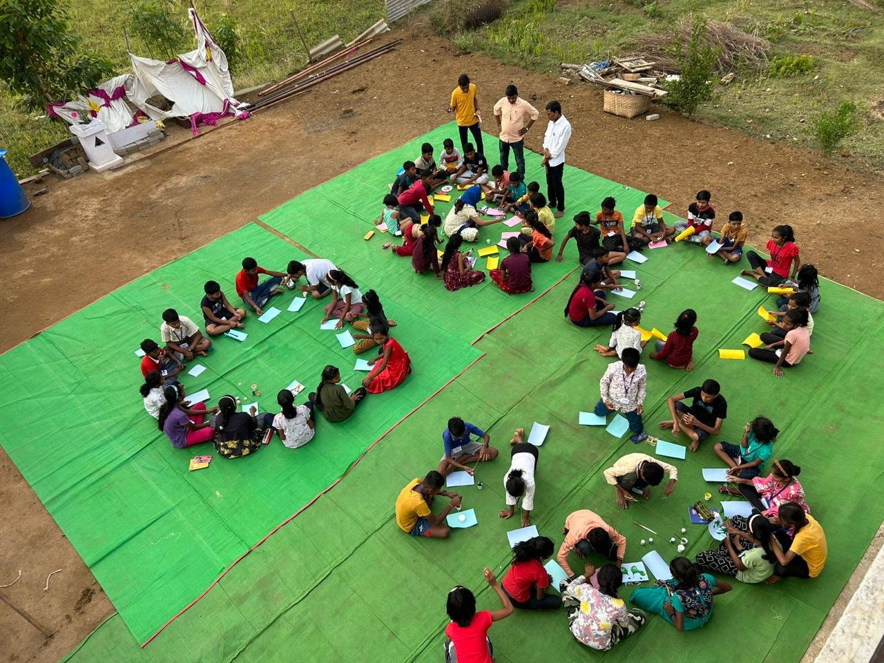 रात्री आलेला वादळ, वारा आणि पाऊस याचाही प्रत्यक्ष अनुभव बालकांनी मुक्तपणे घेतला. या वादळवाऱ्यात सावली आणि जेवनासाठी टाकलेला मंडप पालापाचोळ्यासारखा उडून गेला आणि आयोजकांची चिंता वाढली. तरीही दुसऱ्या दिवशी पहिल्या सत्रात योगा,दुसऱ्या सत्रात डॉ. अद्वय अप्पलवार यांचे डोळ्यांची काळजी आणि आहार याविषयी मार्गदर्शन झाले. लगेच प्राची मॅडम पुणे यांनी चित्रकला आणि पेंटिंग यावर कृतीयुक्त सत्र घेतले.
