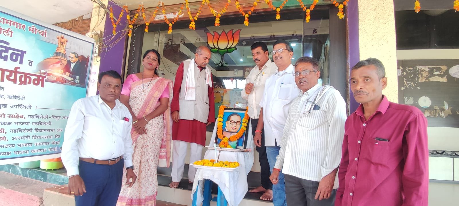 आज दिनांक २६ नोव्हेंबर ला संविधान दिनाचे औचित्य साधुन गडचिरोली- चिमूर लोकसभा निर्वाचन क्षेत्राचे खासदार अशोक नेते यांच्या चामोर्शी रोड स्थित जनसंपर्क कार्यालयात संविधान दिवस साजरा करण्यात आला. भारतरत्न डॉ बाबासाहेब आंबेडकर तथा संविधान प्रास्ताविकास पुष्पहार अर्पण करून संविधान प्रास्ताविकाचे वाचन करण्यात आले.