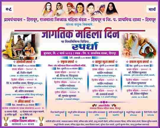 ८ मार्च जागतिक महिला दिनाचे औचित्य साधून राजमाता जिजाऊ महिला मंडळ,जिल्हा.प.प्राथमिक शाळा व ग्रामपंचायत हिरापूर यांच्या संयुक्त विद्यमाने *एक दिवस...